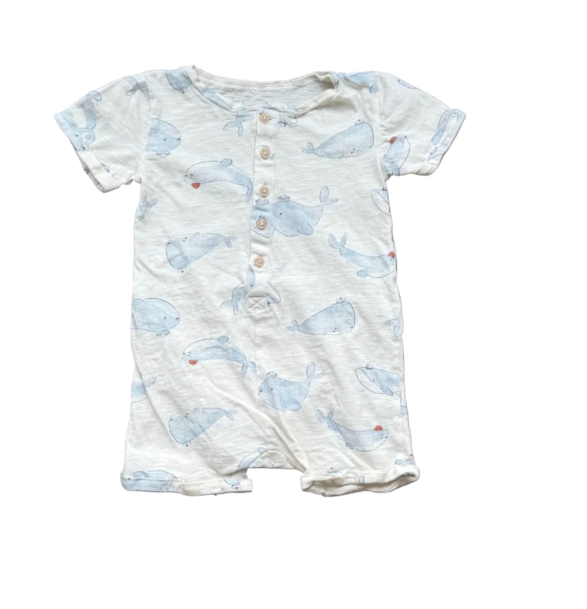 Une pièce style « barboteuse ». Boutons. Imprimé « baleine 🐋 ».