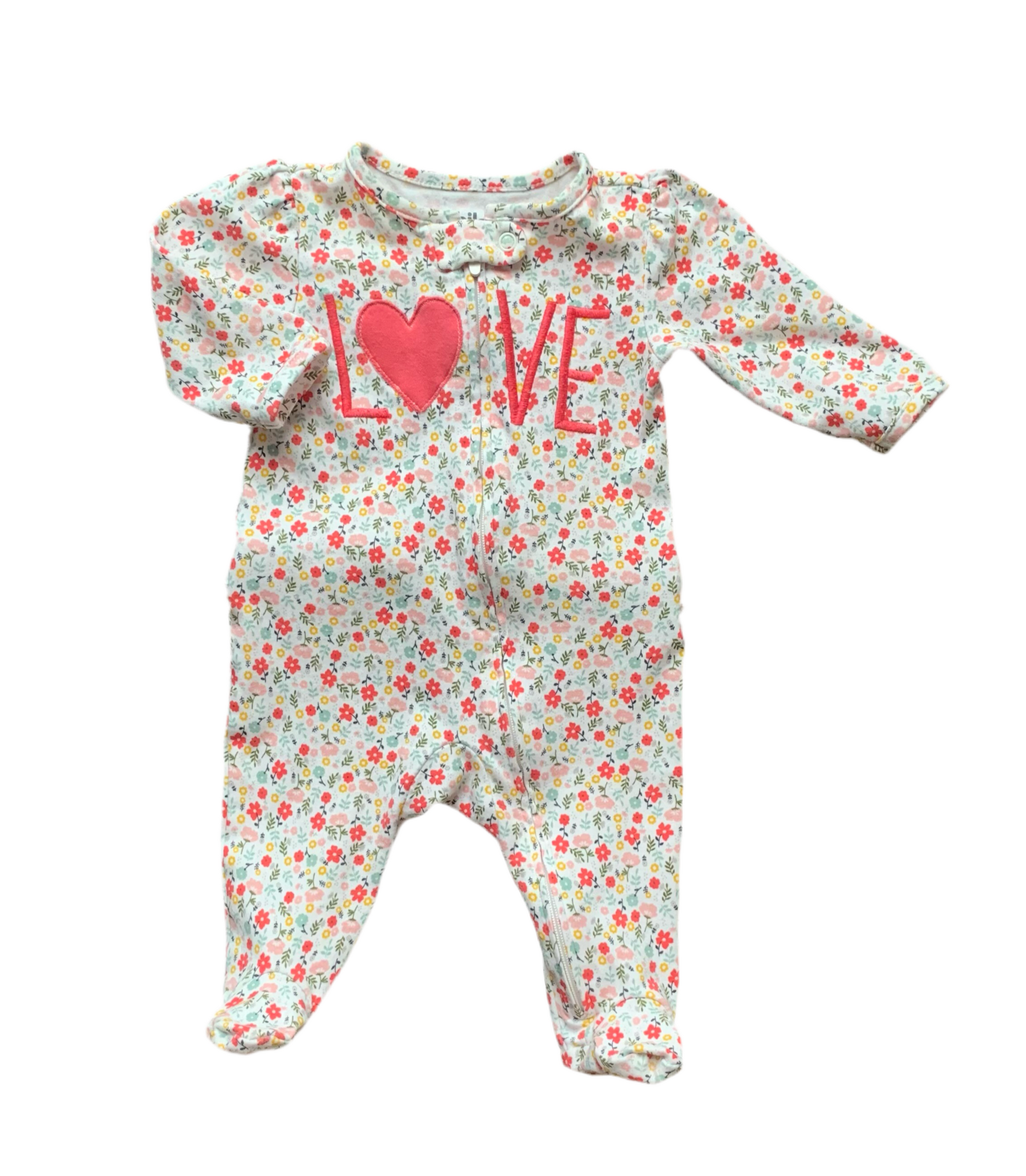 Pyjama à pattes imprimé « floral ». Broderies. Petits volants au dos.