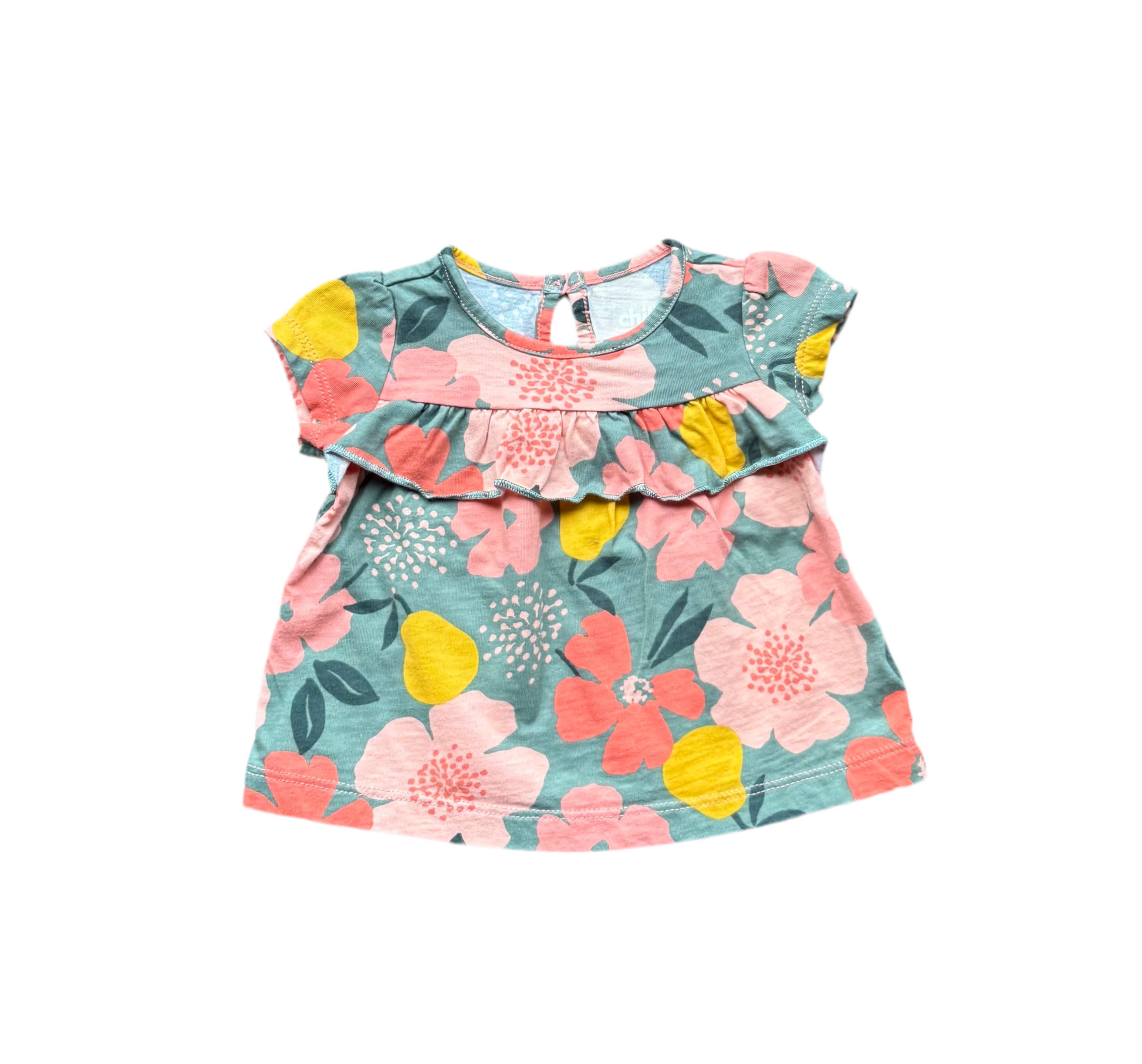 T-shirt imprimé « fleur et poire ». Volant. Bouton.