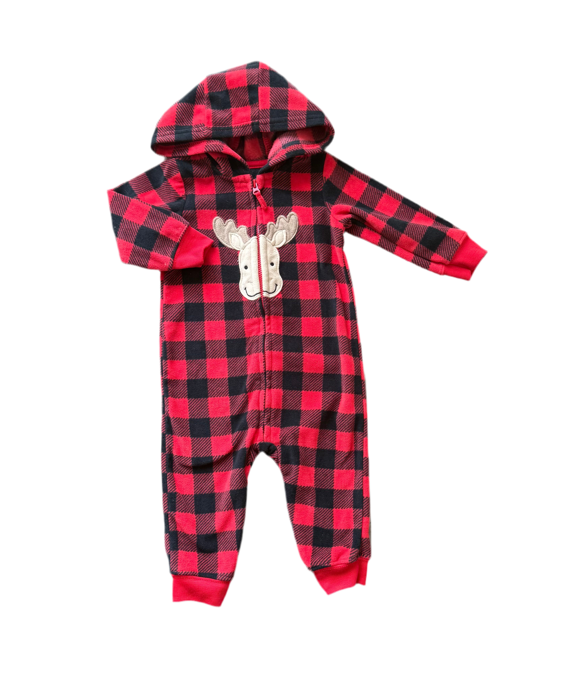Pyjama à capuche sans pieds. Style « plaid ». Imprimé « orignal 🫎 ».