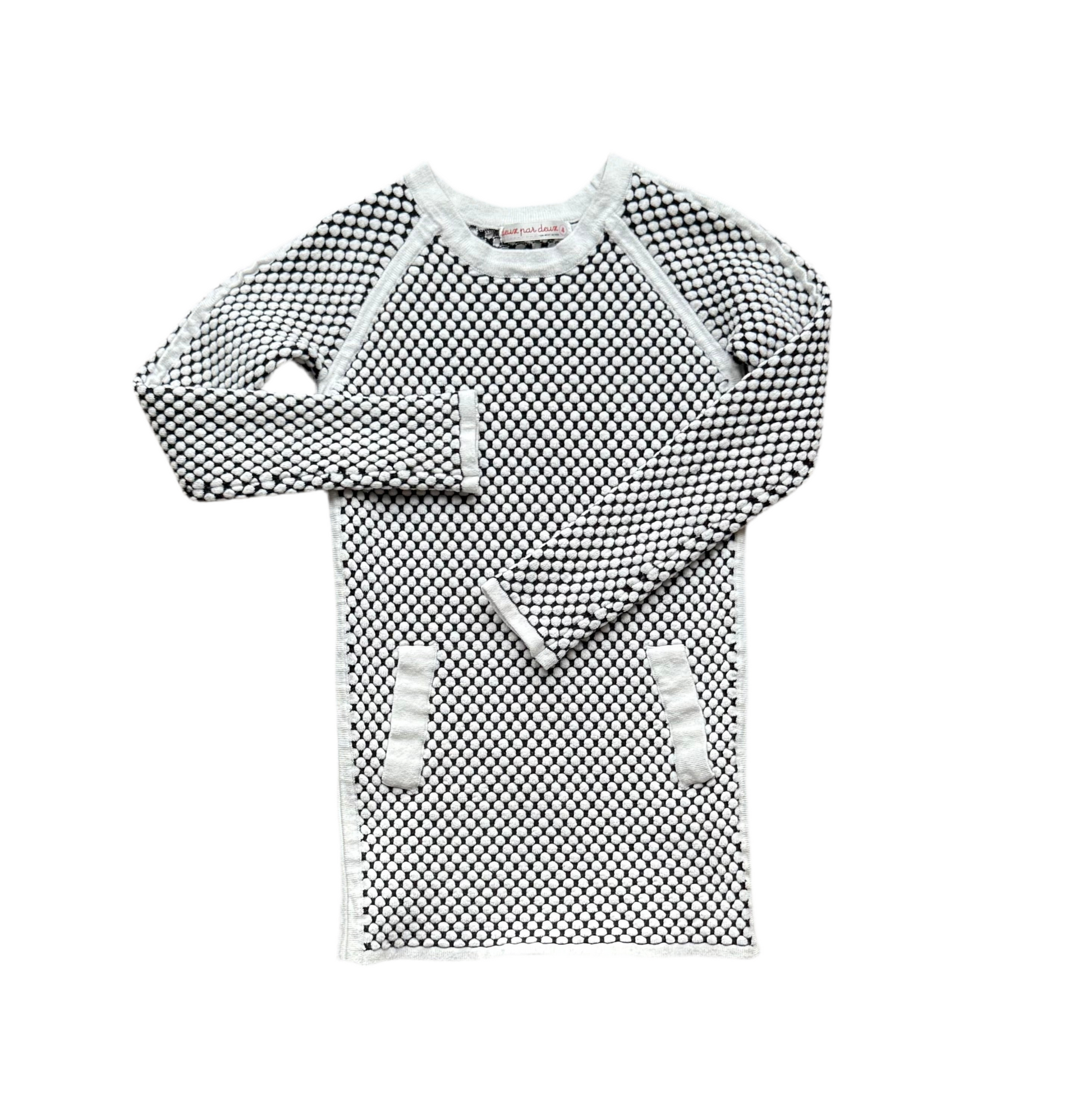 Tunique avec fausses poches avant. Boutons au niveau du dos. Tissu style gaufré.