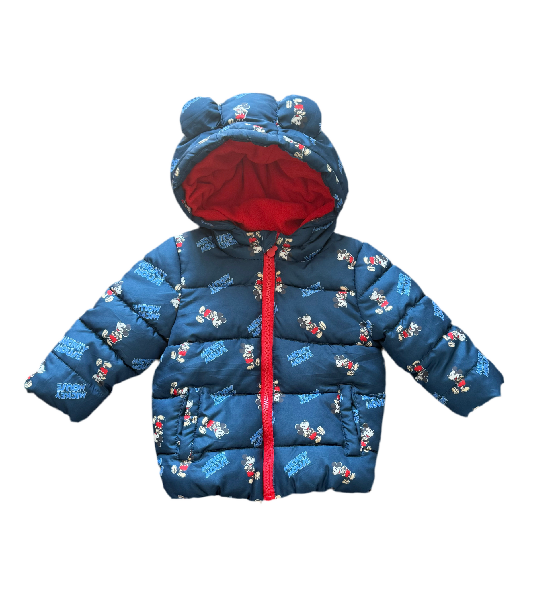 Manteau à capuche,style « puffer jacket ». Imprimé « Mickey Mouse ».