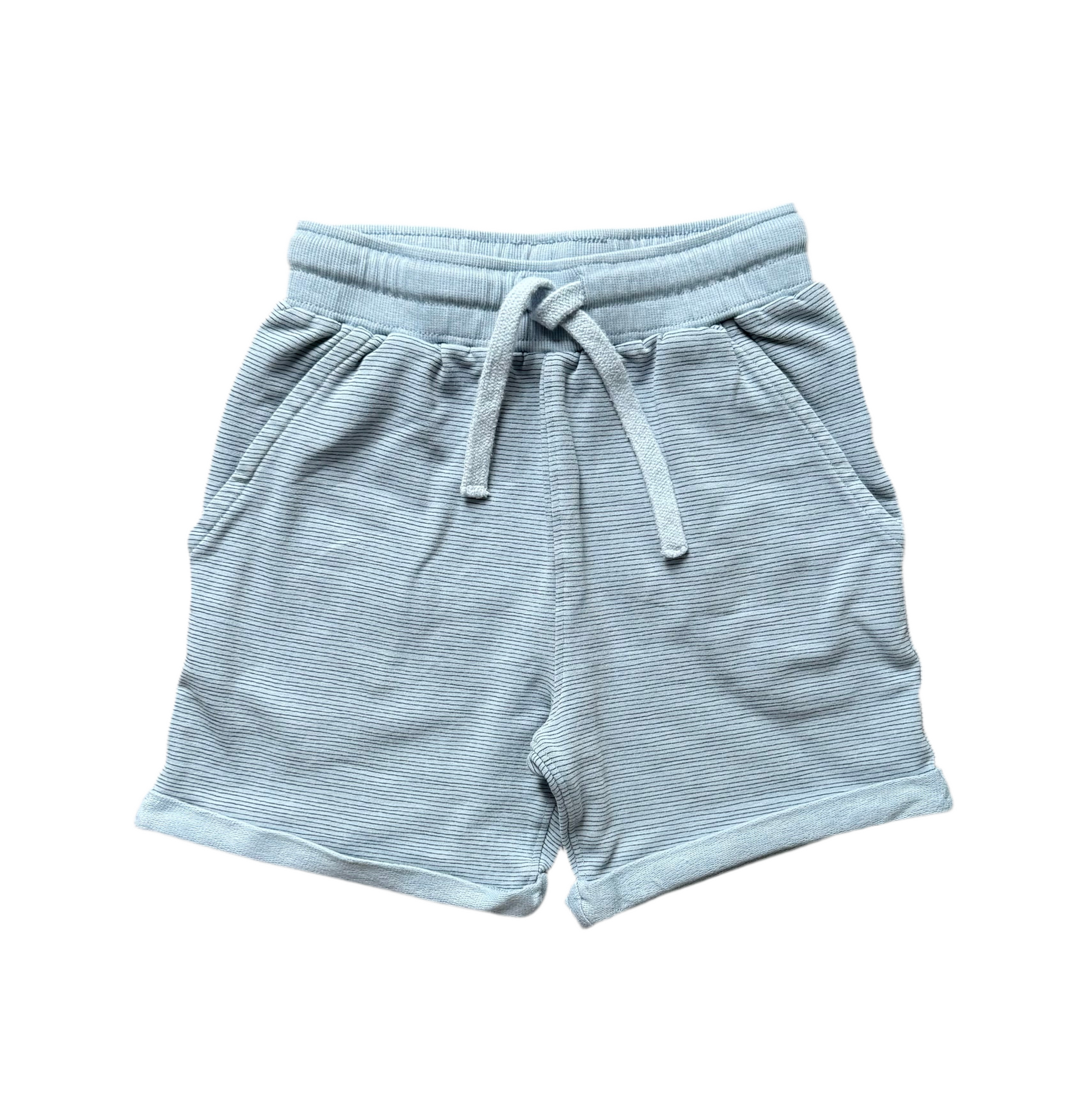 Short rayé avec poches avant et arrière. Taille élastique.
