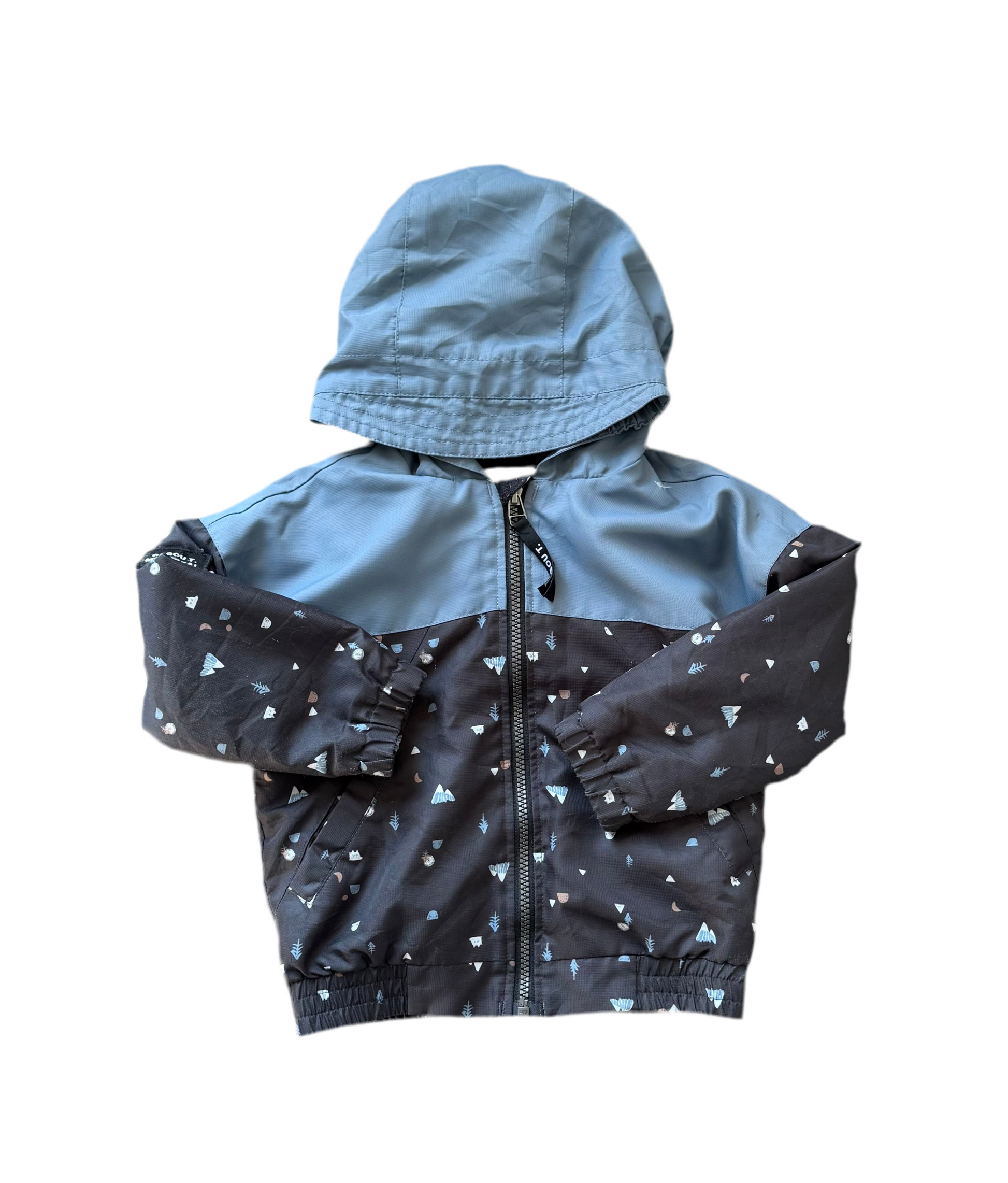 Manteau mi-saison à capuche. Coupe-vent. Poche avec velcro. Imprimé « Loup et conifère 🌲 ».