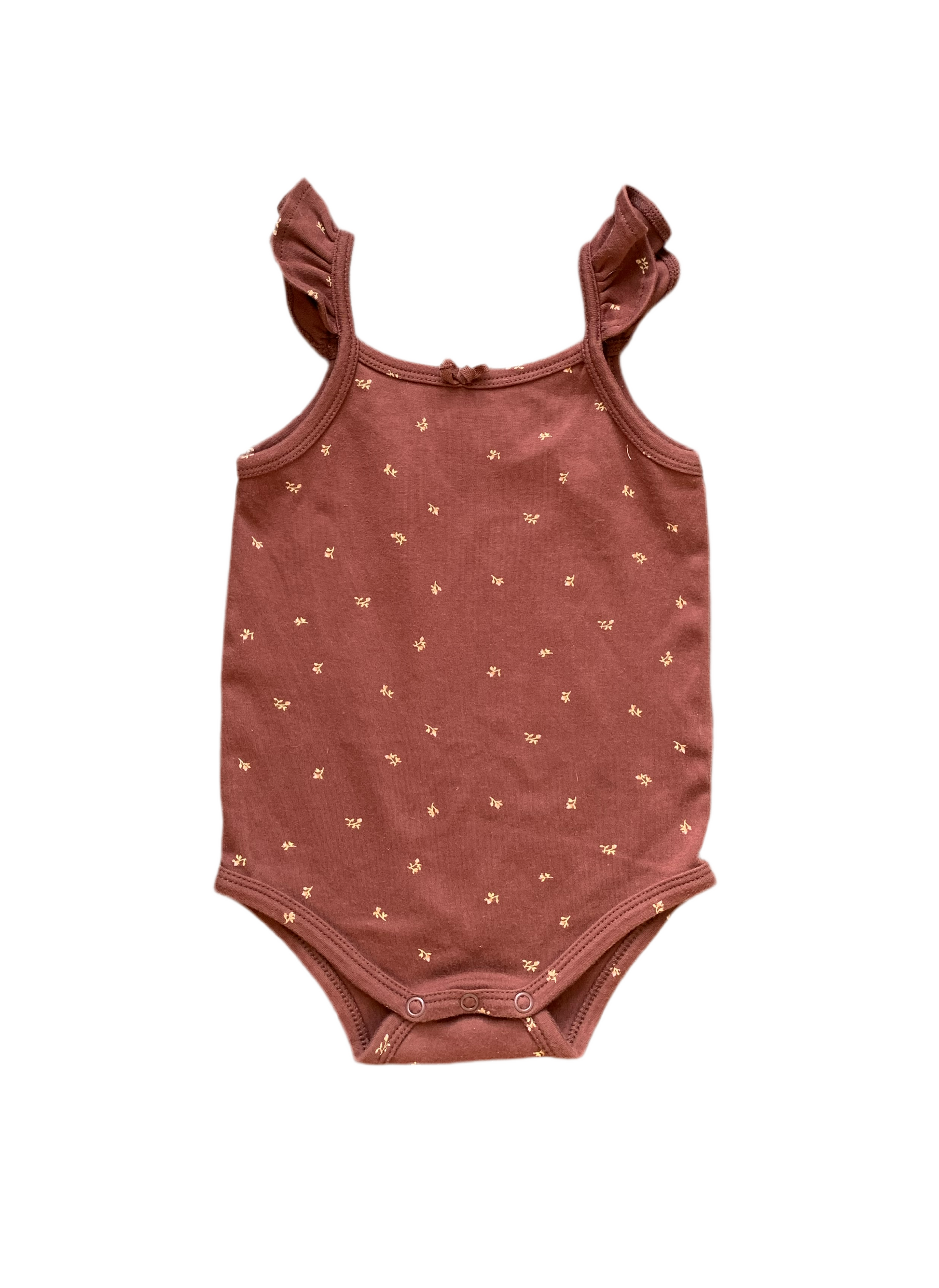 Cache-couche fleuri. Épaules avec volants. Boutons-pression.
