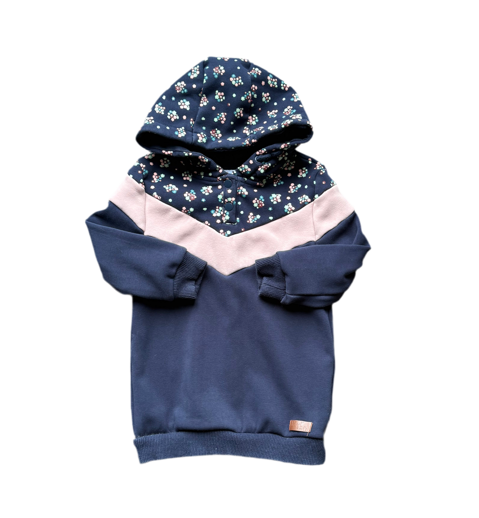 Tunique à capuche. Imprimé « floral ». Doublé en micro polar style « velours ».