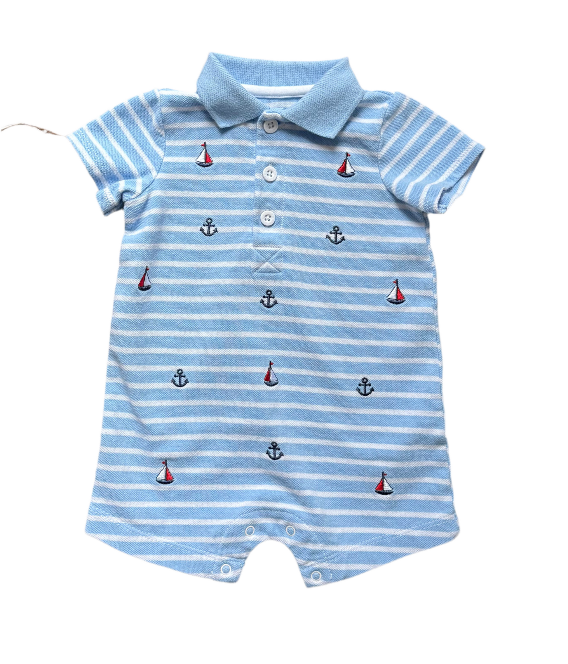 Barboteuse rayée imprimé « bateau ». Boutons et boutons-pression.