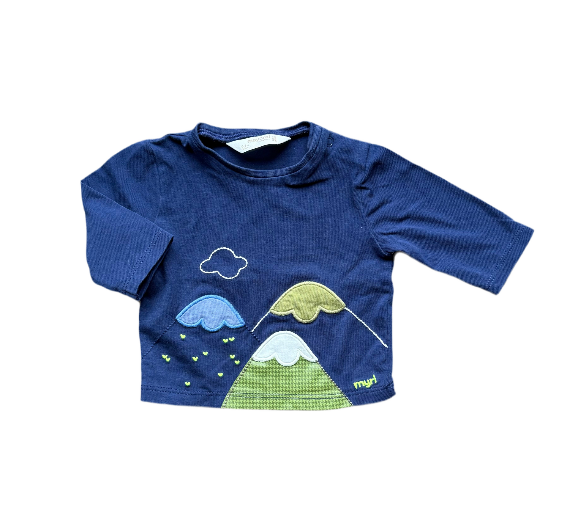Chandail imprimé « montagne ». Broderie. Boutons-pressions.