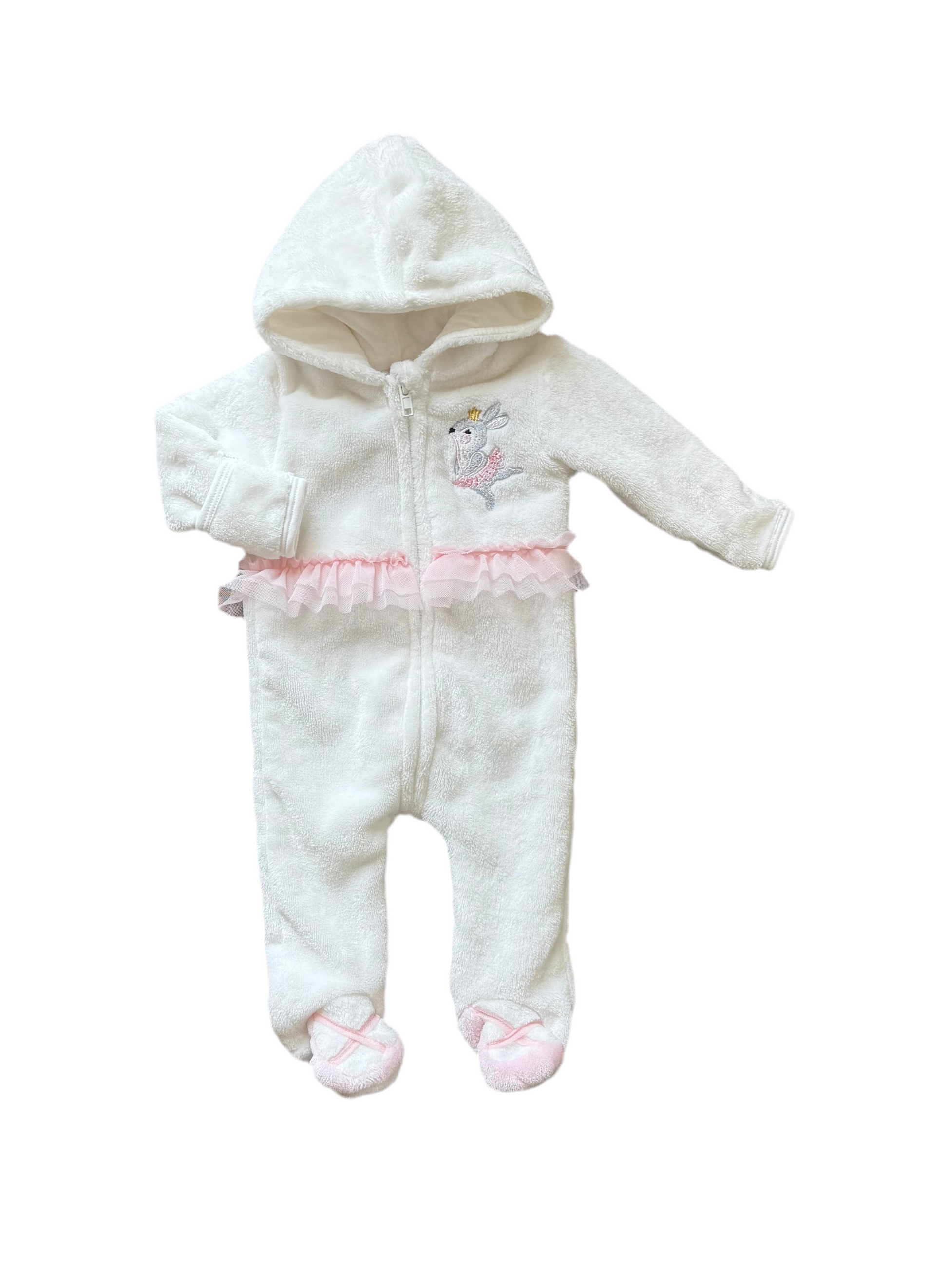 Pyjama à pattes avec capuche. Broderie « lapine ballerine ». Tulle. Détails « chausson ballerine 🩰».