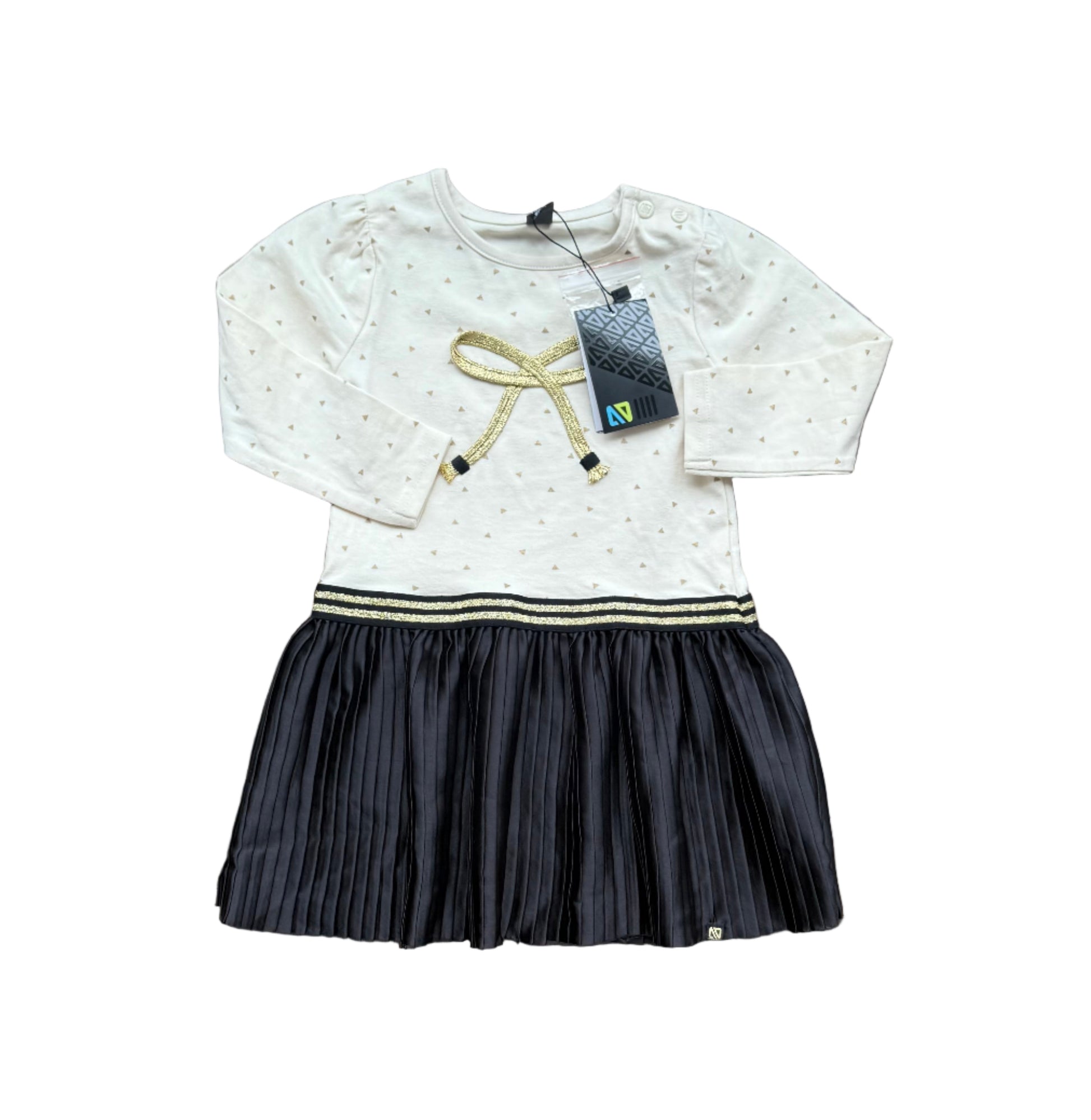 Robe bi-matière. Imprimé « triangle et boucle ». Détail boucles.
