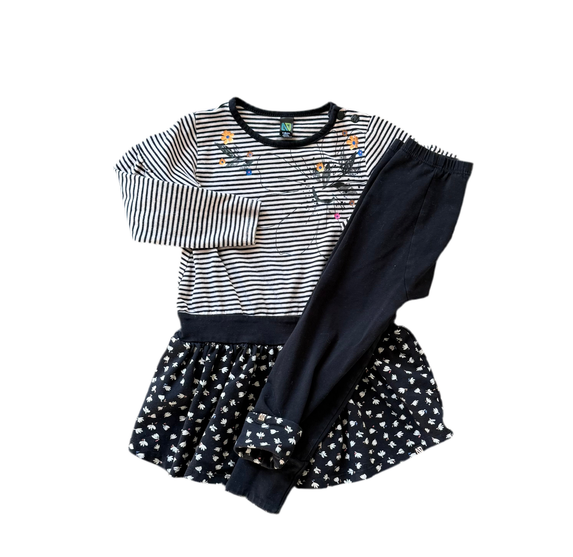 Ensemble deux pièces comprenant Robe rayée avec motif fleuri et un legging. Imprimé « floral ».