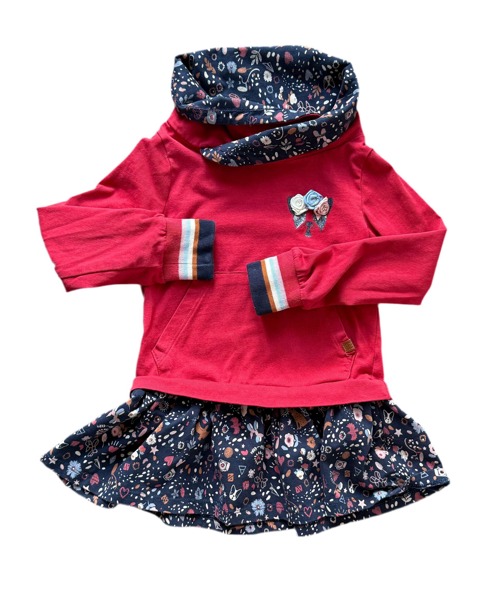 Robe poche ventrale. Imprimé « floral ». Col fleuri.