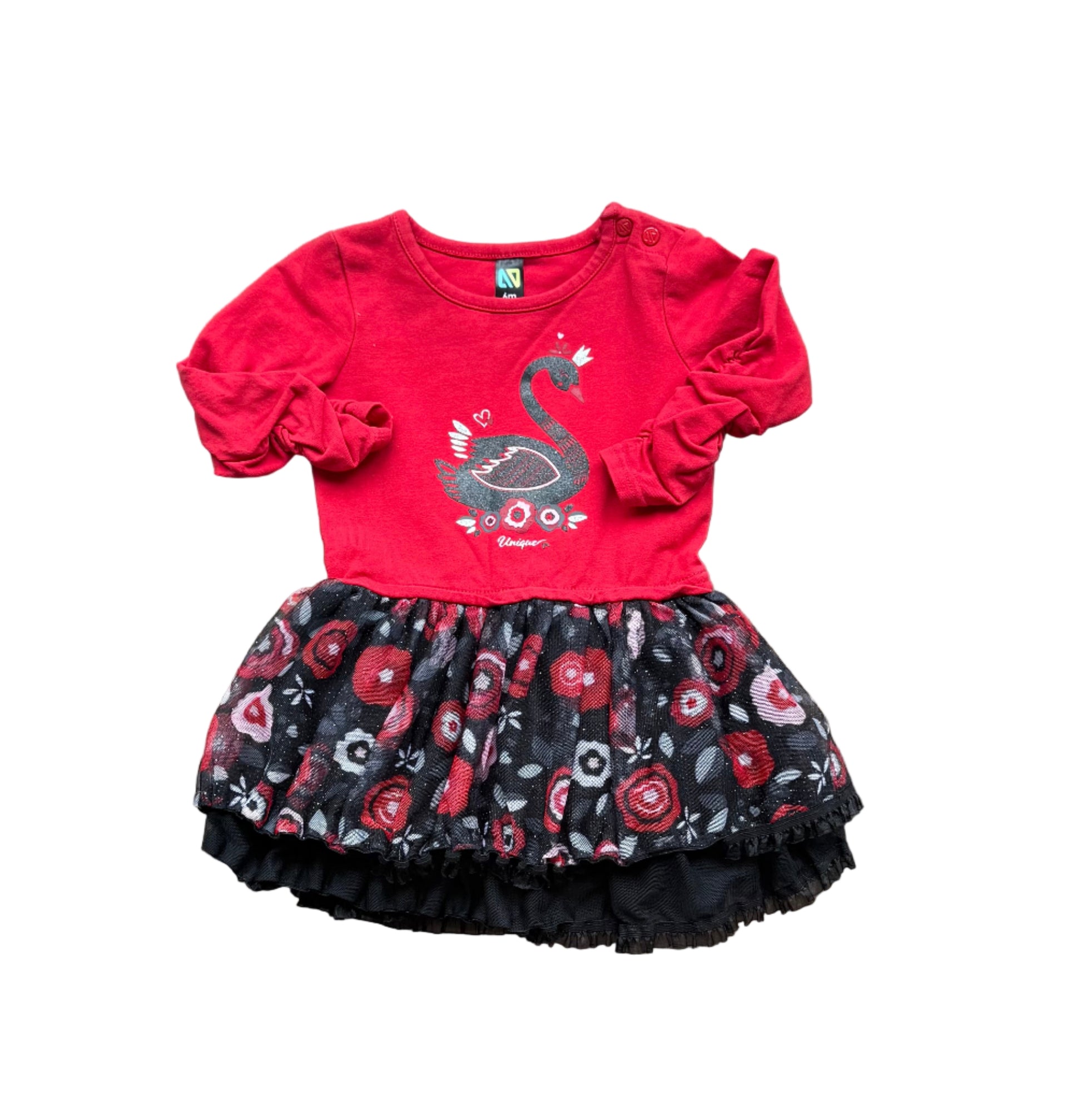 Robe bi-matière avec tulle. Jupon. Imprimé « floral ».