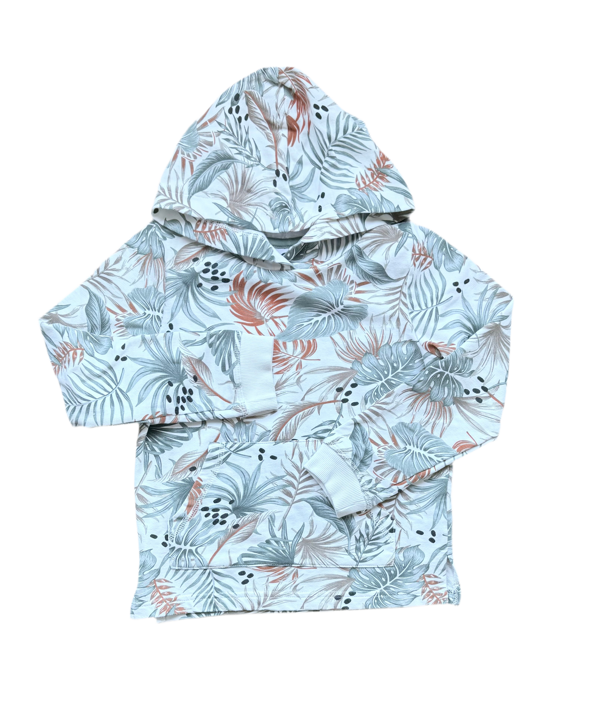 Chandail à capuche style « hoodie ». Poche ventrale. Imprimé « feuillage ».