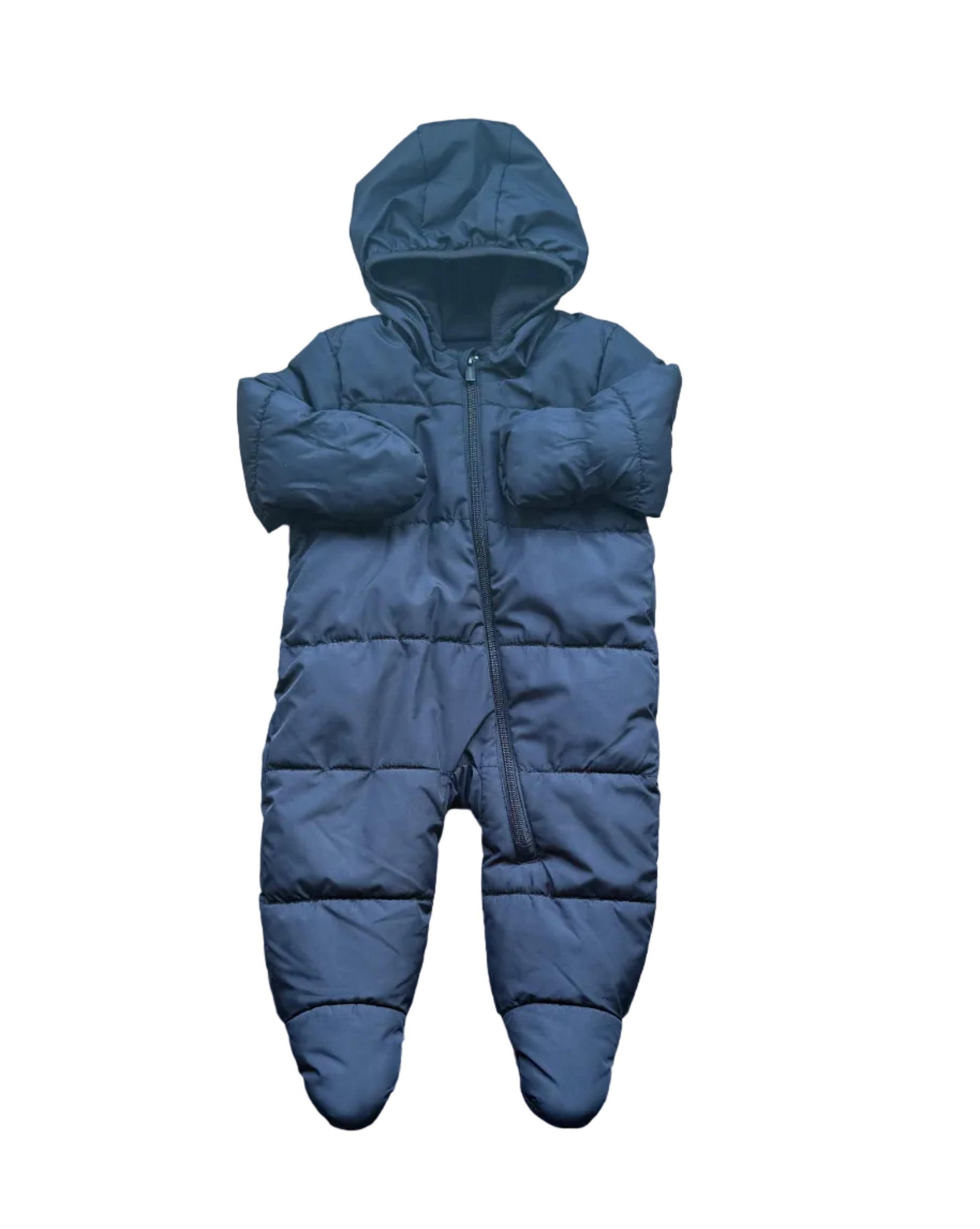 Combinaison à capuche matelassé. Doublure en micro polar. Mitaines rabattantes.