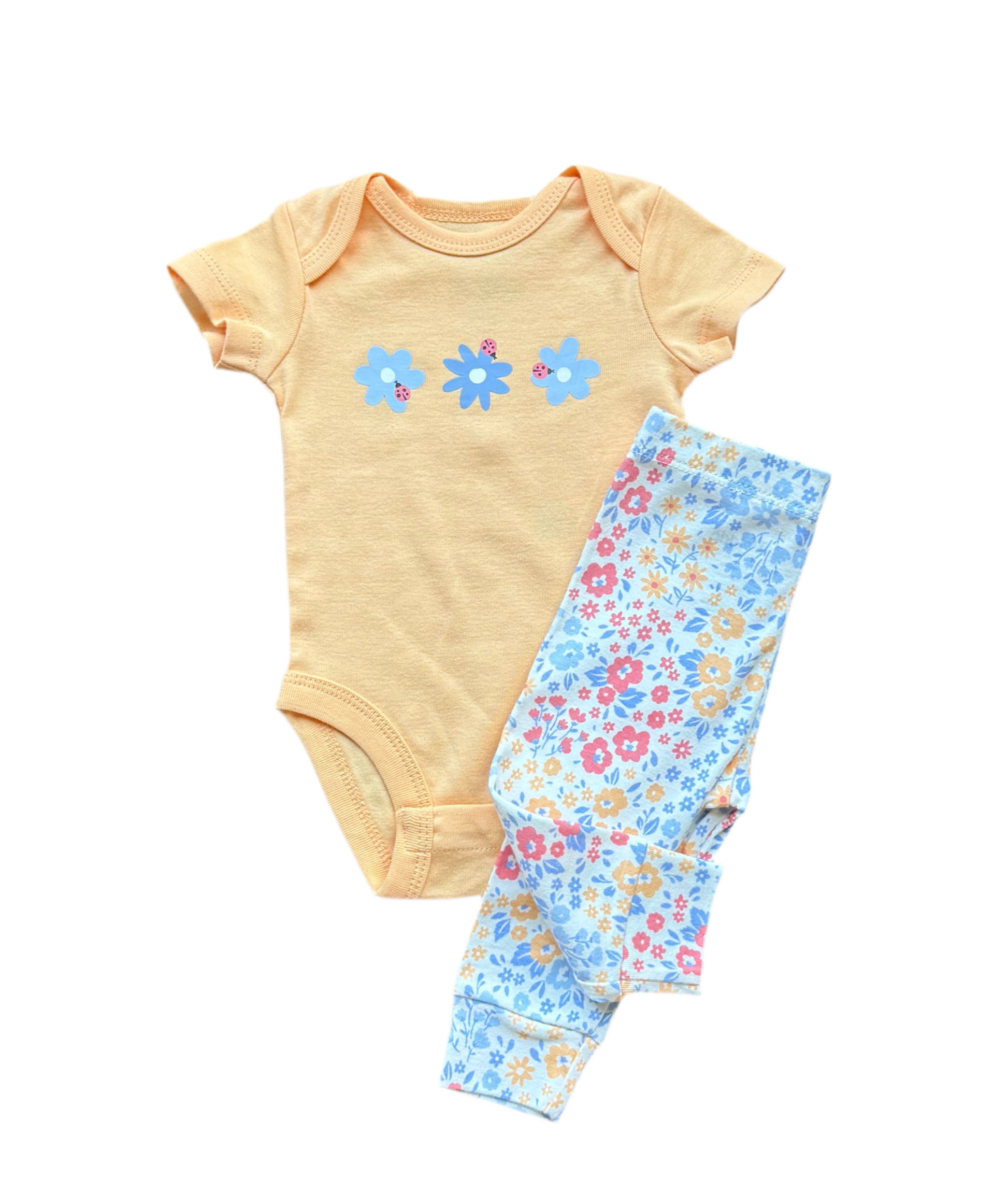 Ensemble deux pièces comprenant ; legging, cache-couche. Imprimé « fleur et coccinelle ».