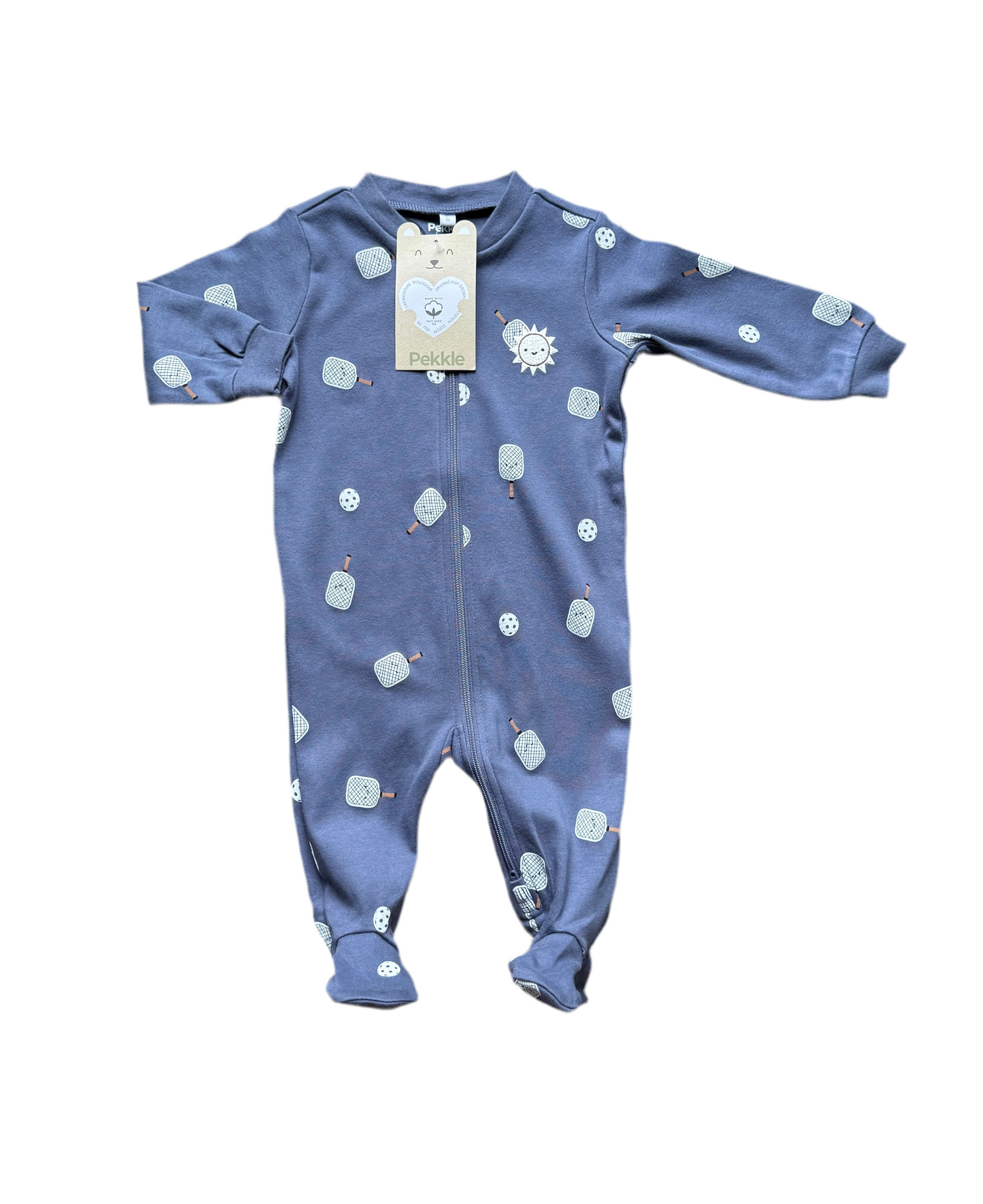Pyjama à pattes imprimé « Raquette et balle ». Broderie Soleil ☀️. Fermeture éclair.