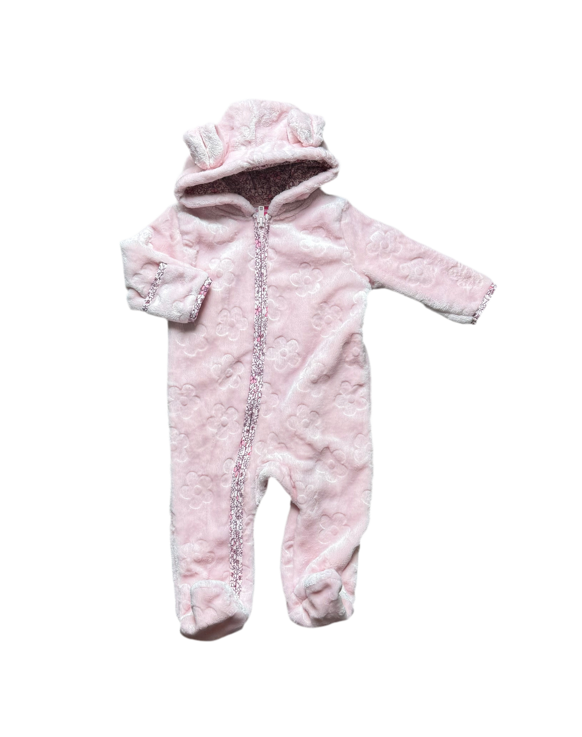 Combinaison à pattes. Capuche avec oreilles. Mitaines rabattantes. Imprimé « fleur ».