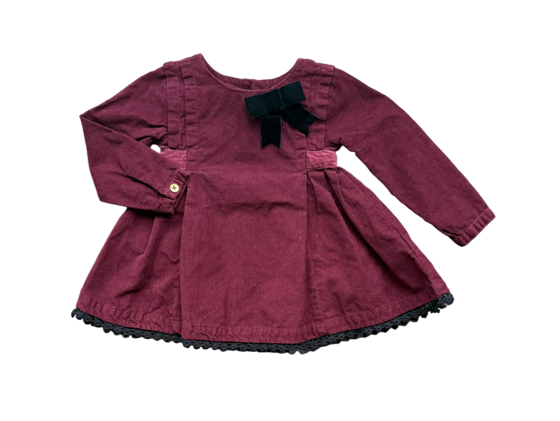 Robe en velours côtelé. Boucle en velours. Boutons. Détails dentelle.