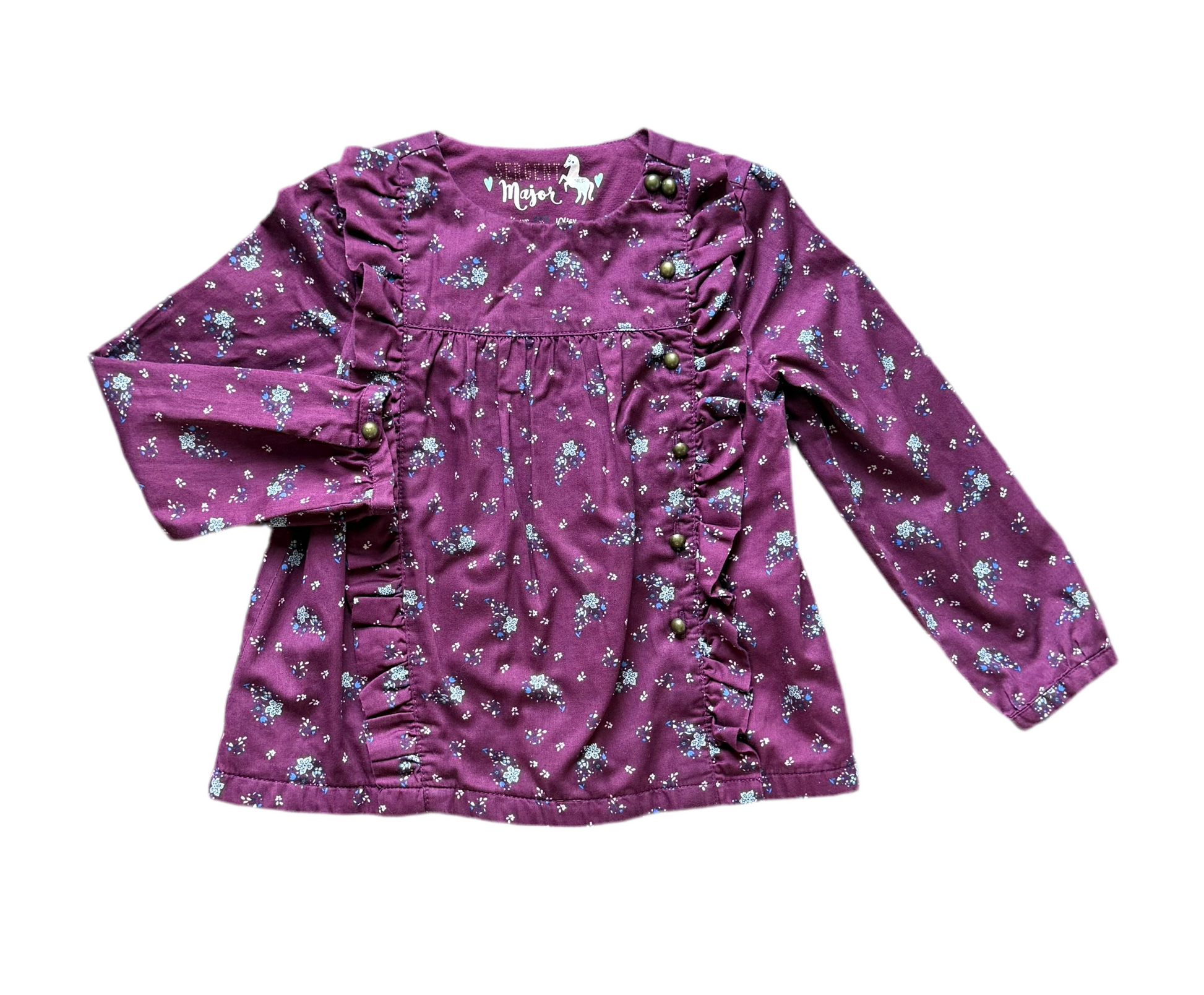 Chemise imprimée « floral ». Volants et boutons décoratifs.