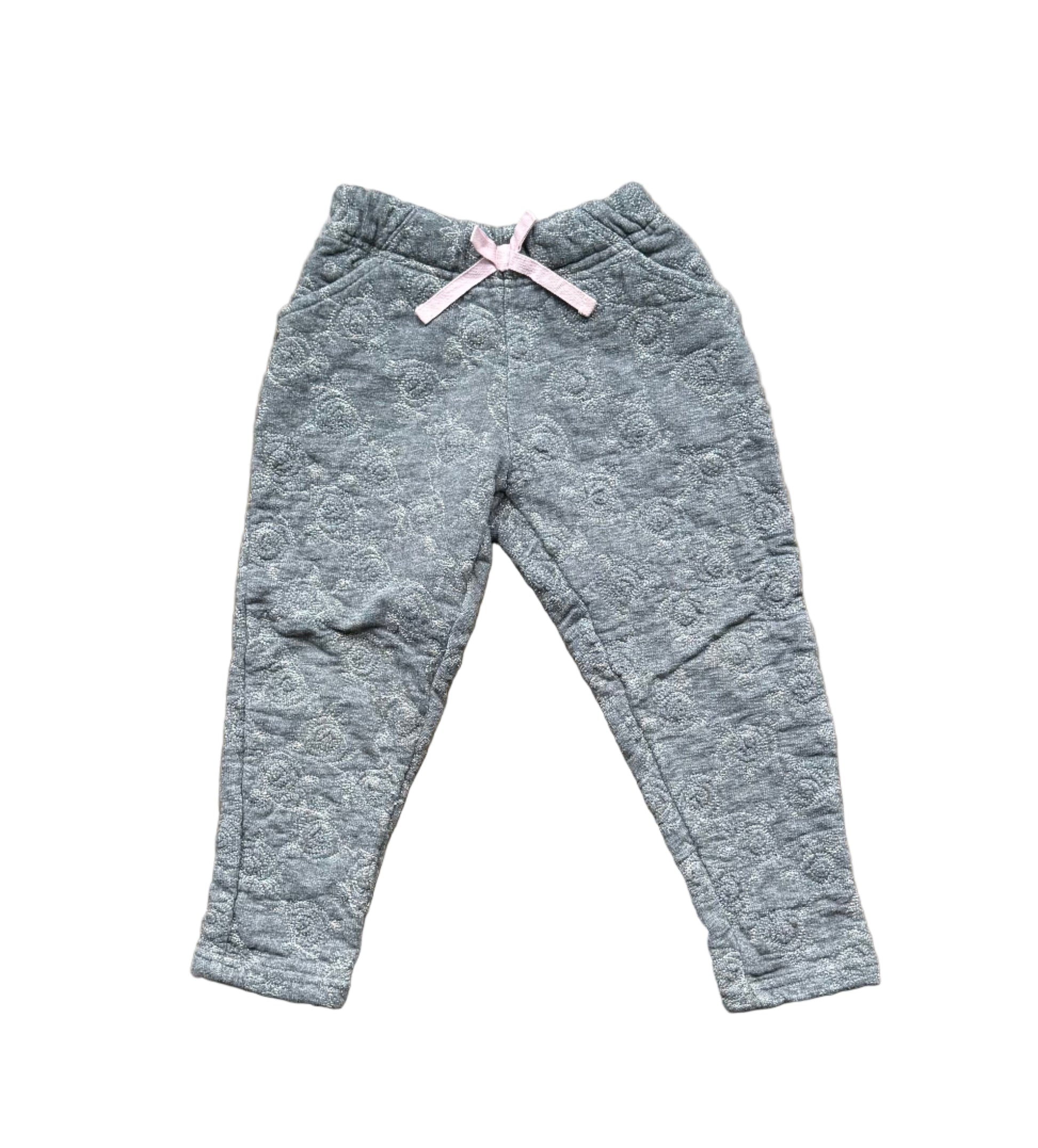 Pantalon style « matelassé ». Broderie « rose ». Taille élastique.