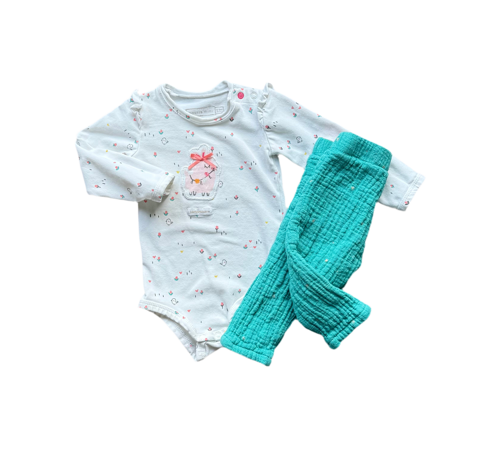 Ensemble deux pièces comprenant : pantalon réversible et un cache-couche. Imprimé « lama 🦙 ». Boutons-pression.