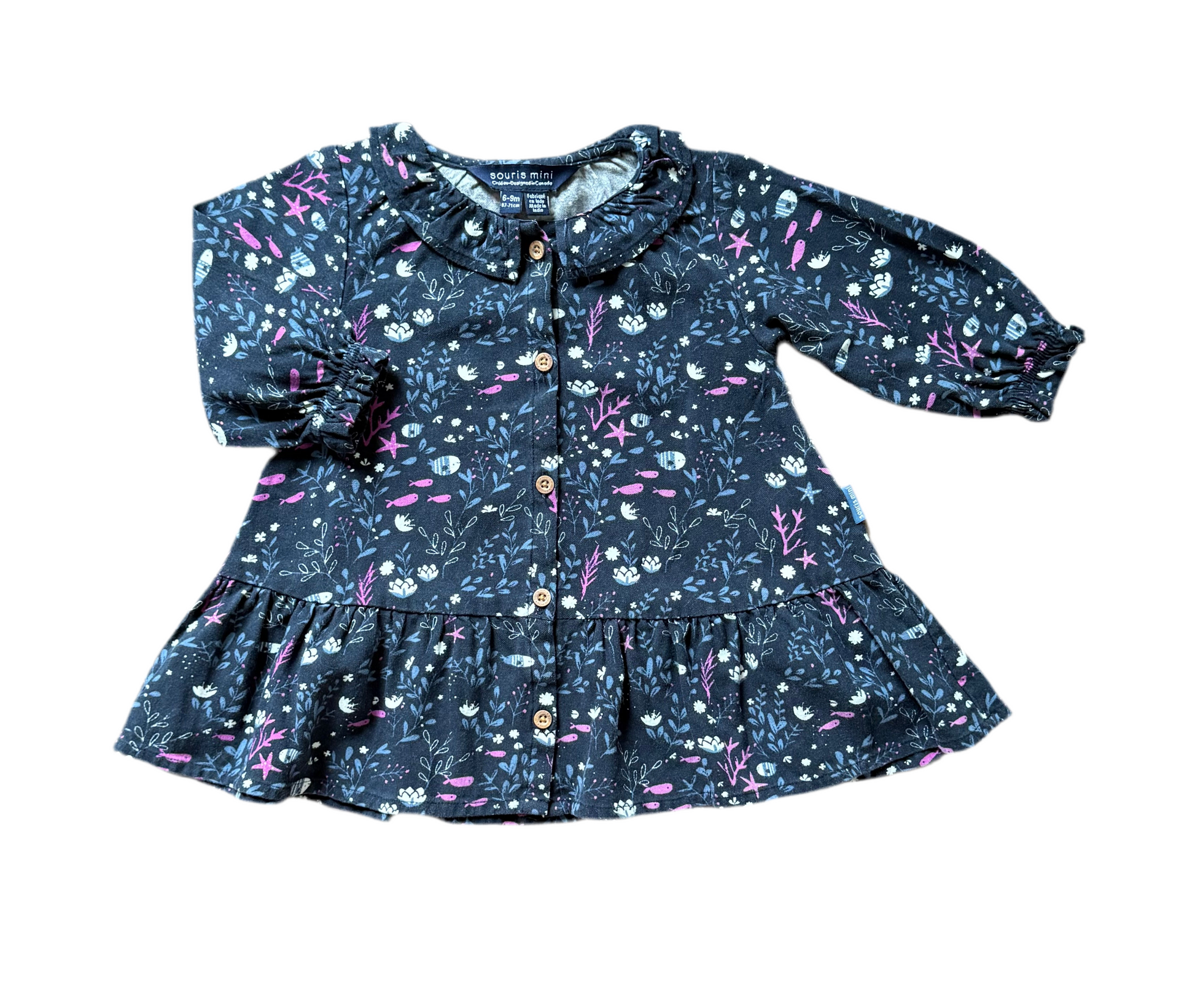 Robe avec col. Boutons. Imprimé « poisson 🐟 ».