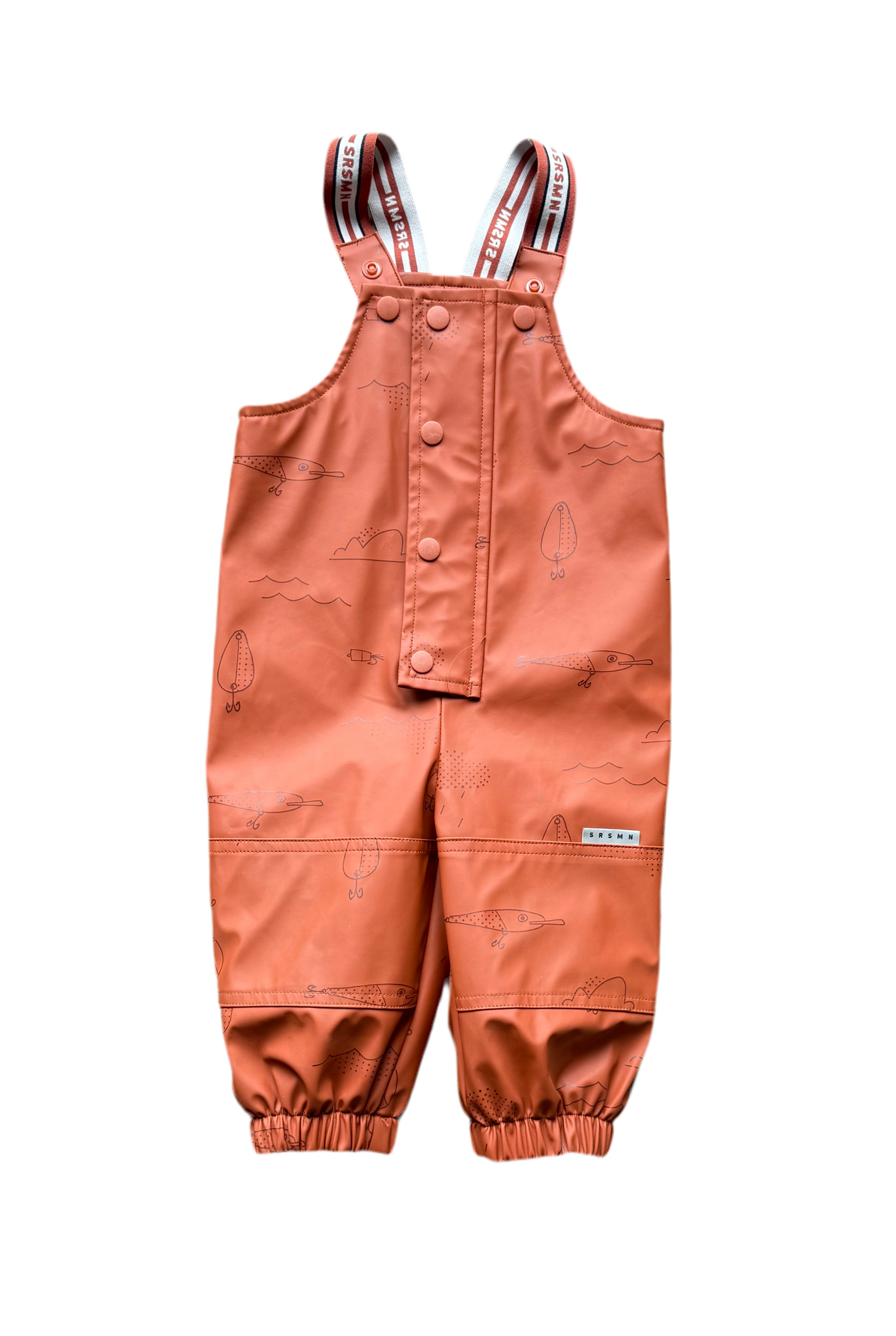 Salopette de pluie. Fermeture éclair et boutons-pression. Imprimé « hop ! à la pêche 🎣 ». Bretelles ajustables.