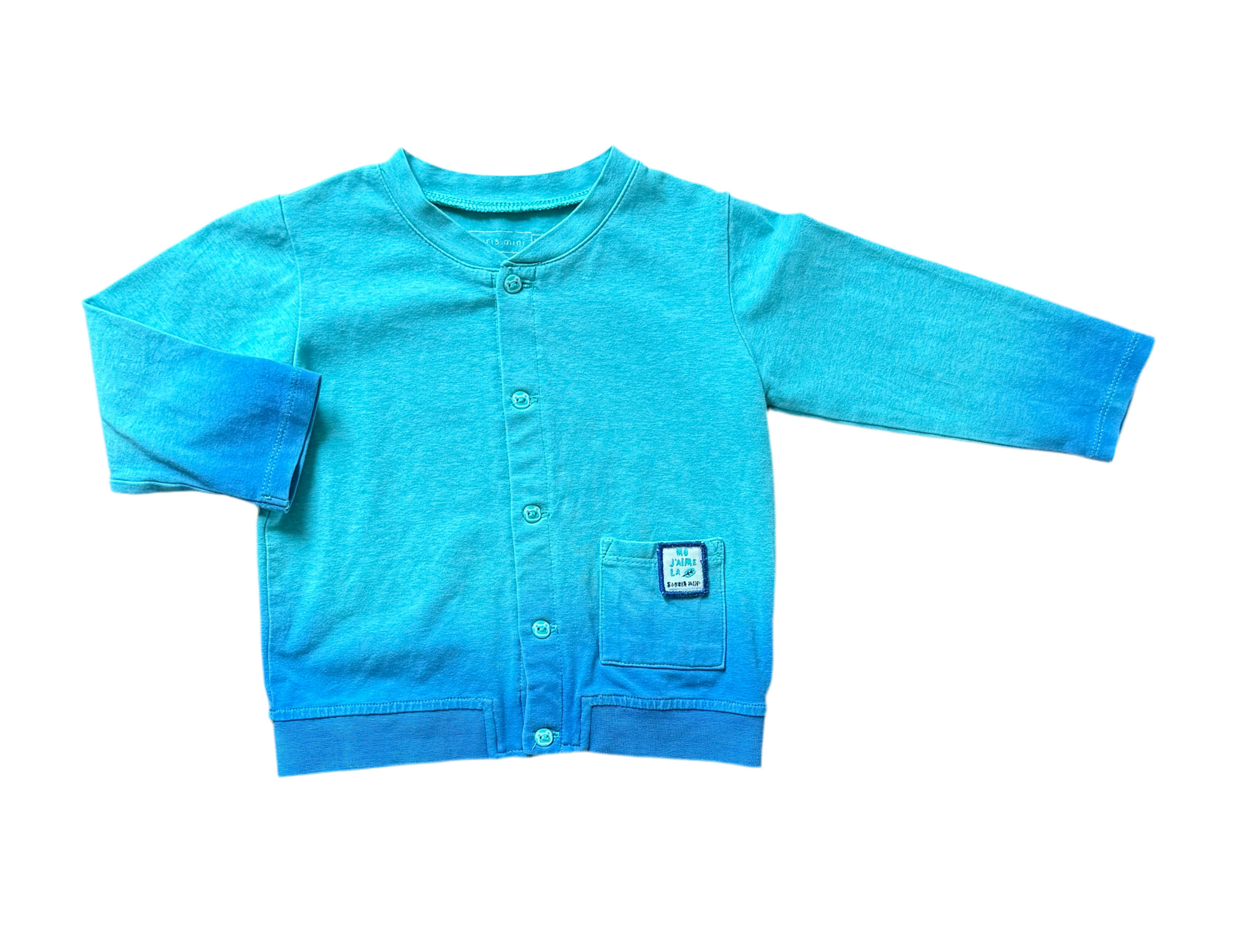 Cardigan dégradé de bleu avec poche avant. Écusson. Boutons.