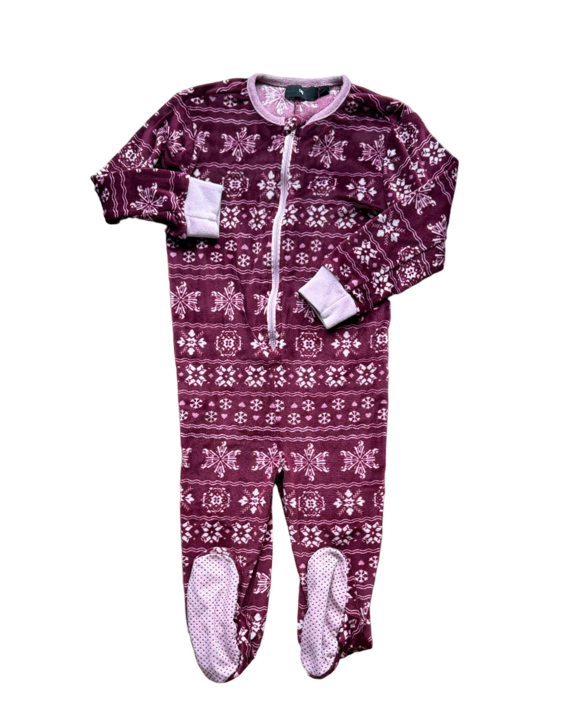 Pyjama à pattes en micro polar. Fermeture éclair. Imprimé « flocons ».