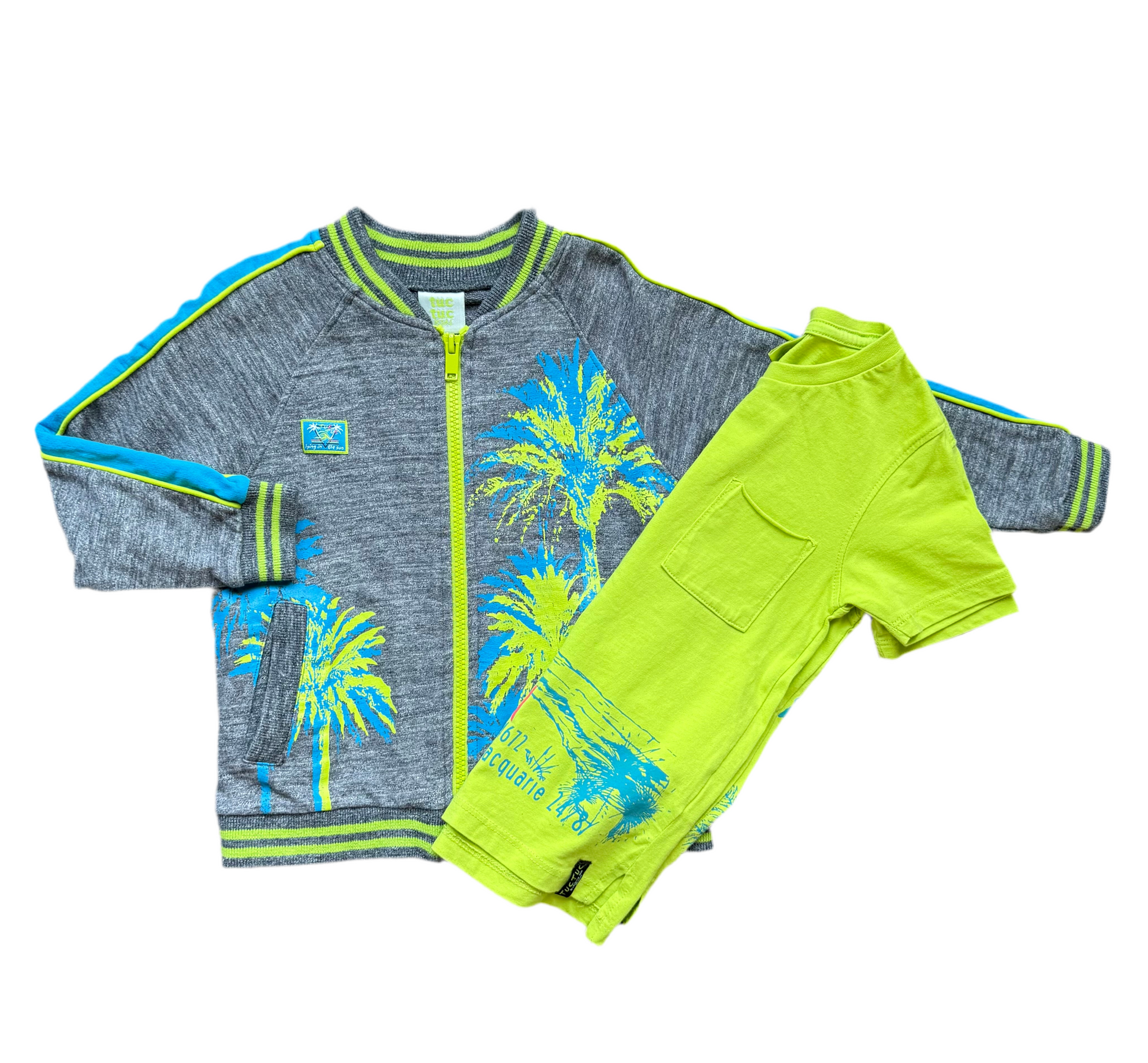 Ensemble comprenant une veste et un t-shirt. Imprimé « palmier ». Poche avant.