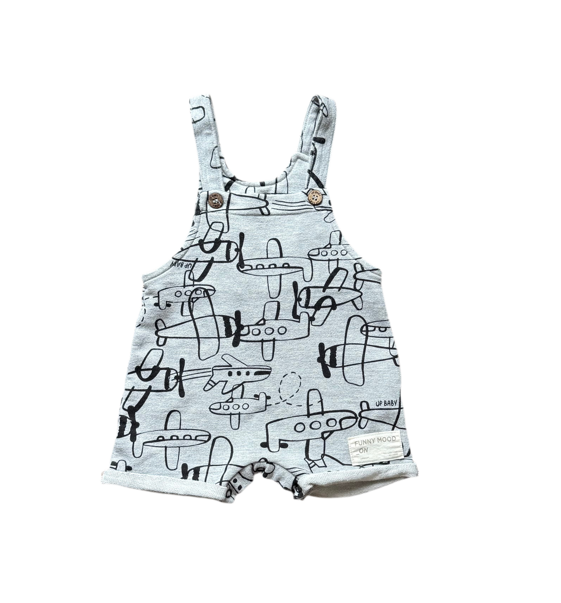 Salopette en coton avec bretelles ajustable. Imprimé « avion ».
