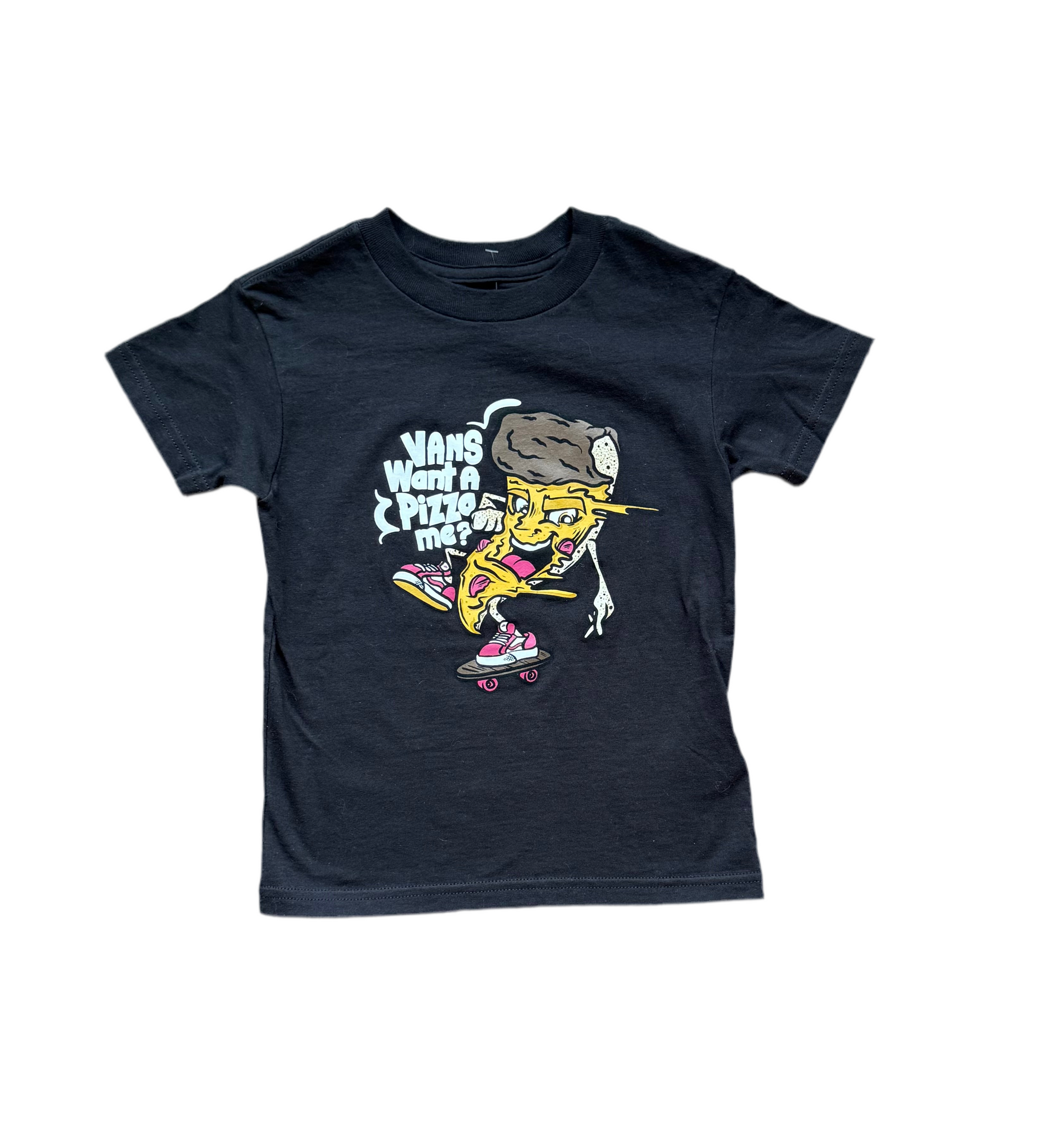 T-shirt imprimé « pizza et skateboard ».