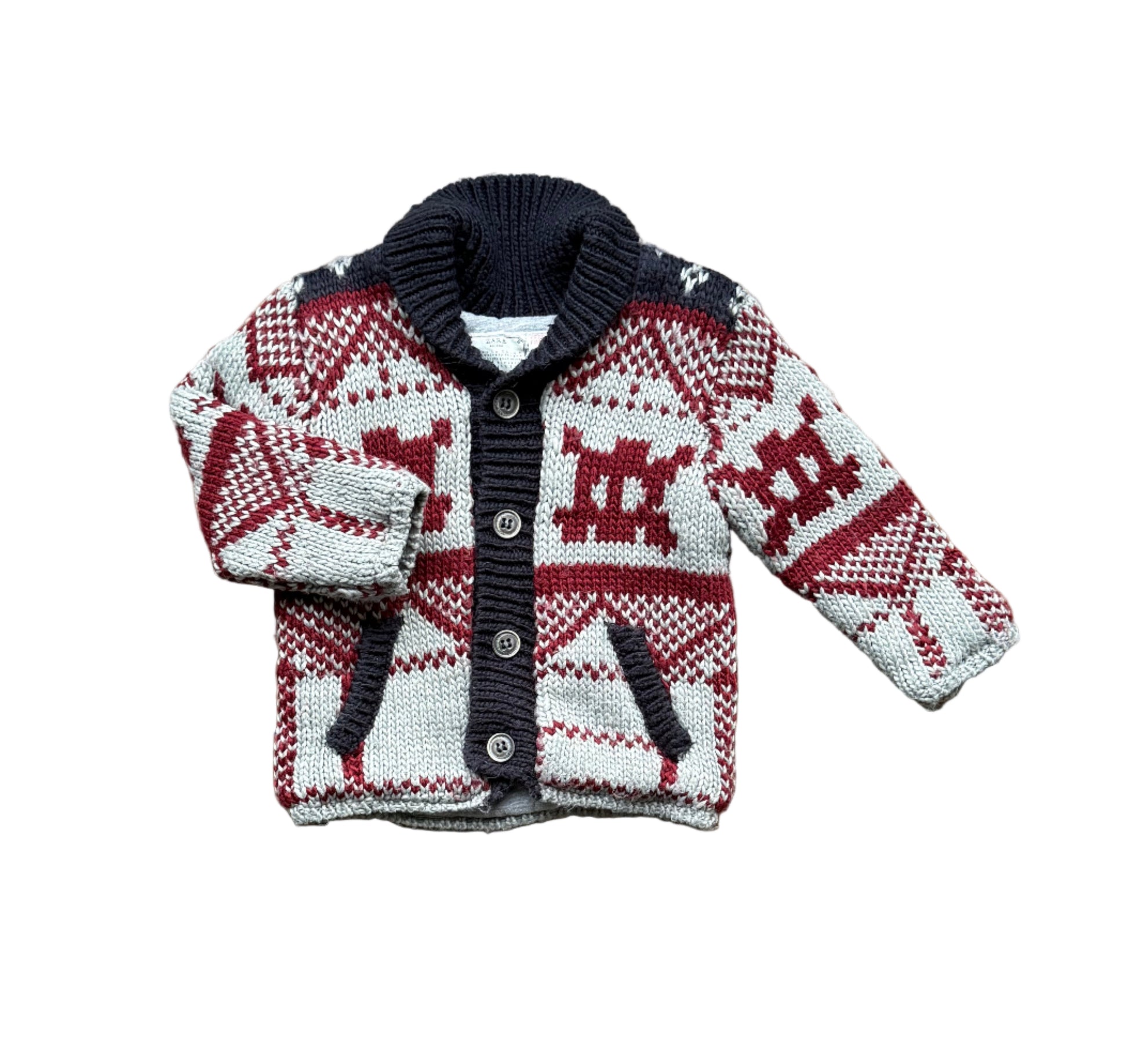 Cardigan/ veste en tricot. Fausses Poches. Boutons. Col montant.